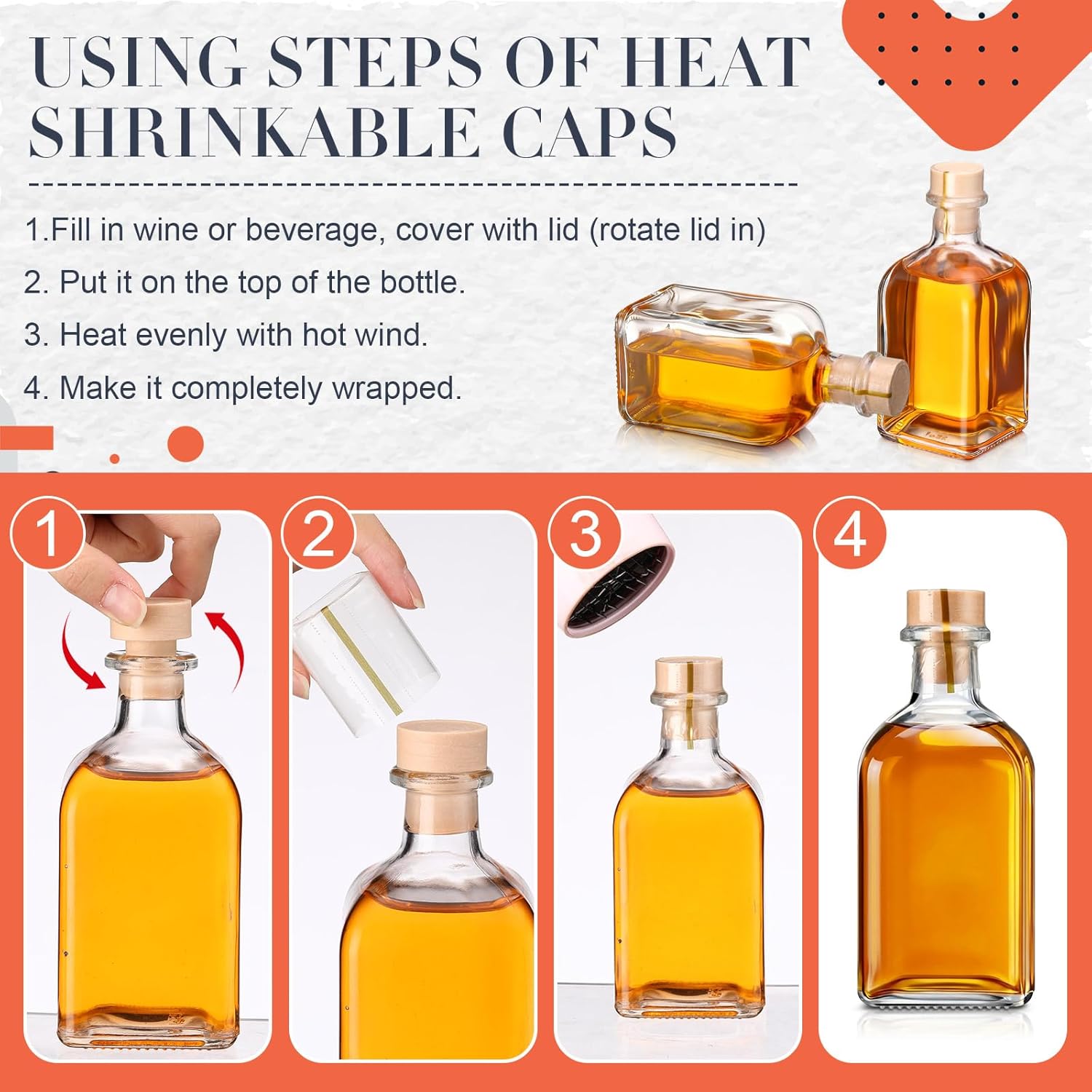 Features: These 8oz glass bottles are suitable for sending to your friends, colleagues, relatives, neighbors, family members and others you care and love, they will be happy to receive these gifts. These clear wine bottles, with their 8 ounce capacity, are suitable for storing a variety of liquids, oil, whiskey, syrups, and more. Specifications: Material: main glass Color: main clear Size: 5.5 inches in height, of 2.36 inches in bottom diameter Package includes: 10 x Clear glass bottles with lids Notes: Manual measurement, please allow slight errors on size. The color may exist a slight difference due to different screen displays