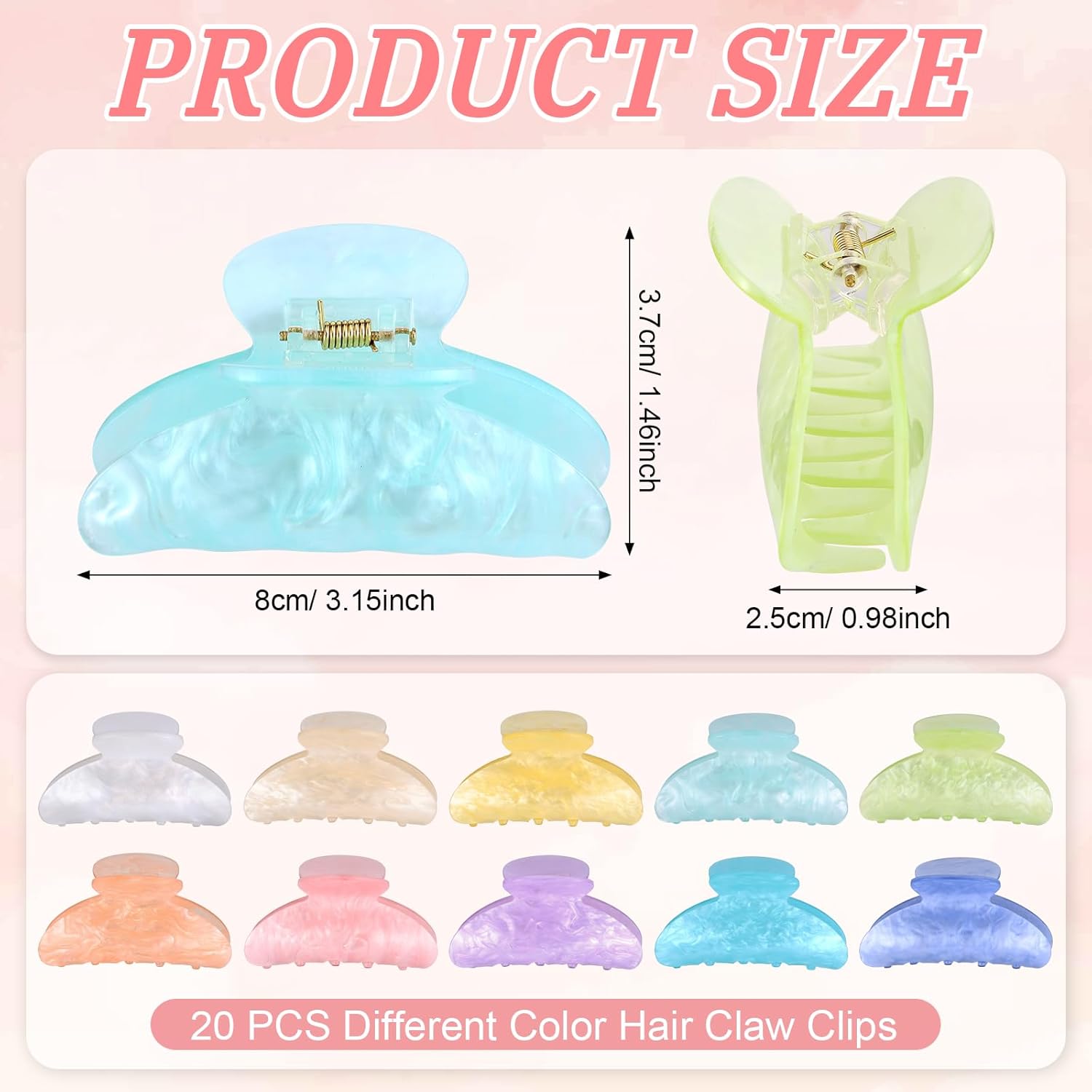 20 PCS Acrylic Hair Claw Clips Non-slip Large Claw Clamps Bulk French Shimmering Stylish Barrettes for Women Girls Thick Thin Hair Home Out Headpiece Features: Ample Quantity for Daily Use: With 20 claw clips bulk in total, you can keep them in different places such as your bathroom, car, handbag, or office drawer, ensuring you always have one ready to use, perfect for long hair, short hair, or medium-length hair styling. Wide Applications: These French shimmering barrettes perfect for everyday use, parties, travel, or work, their fashionable French style adds a touch of elegance to any outfit, also makes a thoughtful bulk gift set for birthdays, holidays, Valentine's Day, or for sharing with friends and family. Specifications: Color: as the picture shown Material: plastic alloy Size: one size Package includes: 20 x Acrylic Hair Claw Clips Note: The colors may exist slight difference due to different screens. Manual measurement, please allow slight errors on size.