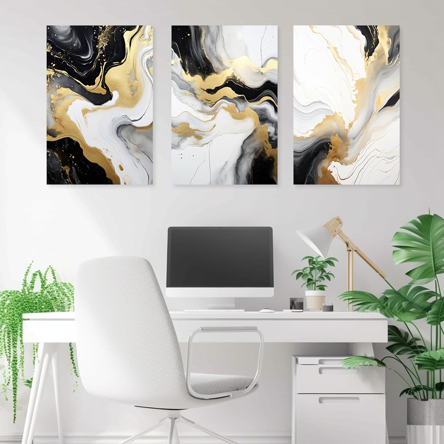 ARTZGX 3 Piece Black White and Gold Wall Art Abstract Canvas Pictures Modern Artwork Painting Print for Living Room Decor Frame(Abstract Black - 1, 12x16inchx3P (30x40cmx3P))