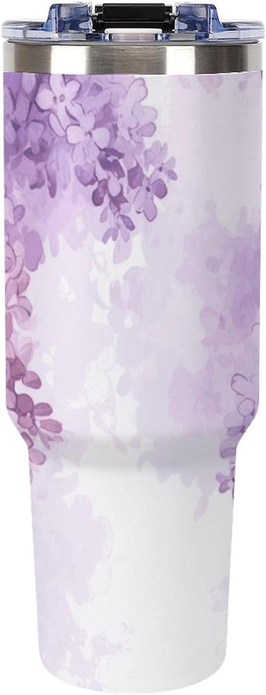 Cupholder Friendly:The portable 40 oz large capacity stainless steel insulated tumbler with handle and straw fits safely in most car cup holders, so you don't have to worry about distractions, even if you're driving. Drive safely, but please don't forget to drink Anti-Leakage Design Of The Lid:Whether you prefer small sips or maximum thirst quenching, it's for you. A straw opening designed to resist splashes with a seal that holds the reusable straw in place, a drink opening, and a full-cover top for added leak resistance. You can easily carry your ice-cold water to work, meetings, the gym or trips out of town Built to Last:The Lilac Flowers in Blossom printed Insulated Coffee Mug,Crafted from a special premium 304grade stainless steel combined with our powder-coated paint finish makes our 40oz tumbler with handle screams durability and scratch resistance! Perfect for any sipping occasion Portability:This insulated tumbler is designed with a handle that is well-designed for a secure grip, the sleek and ergonomic design of this 40 oz tumbler makes it easy to hold and use