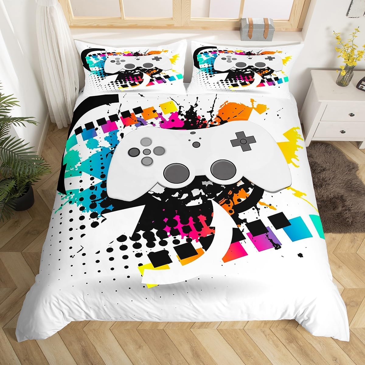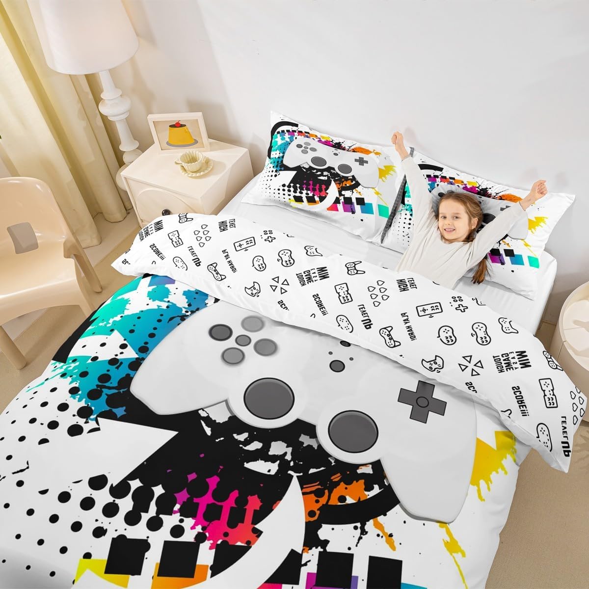 Decorative Bedding Collection Duvet Cover Bedding Set,Simply Decorating Your Rooms Any Time You Want,Bringing You Fresh Feel for Year Round Use. Made From Polyester Microfiber,The Comforter Cover Offers Strength,A Noticeably Soft Hand Feel. Size Information Twin Size Include: 2Pcs Duvet Cover Set: 1 Duvet Cover 68"x90"(173x228cm) and 1 Pillowcase 20"x30"(51x75cm),Without Comforter. Full Size Include: 3Pcs Duvet Cover Set): 1 Duvet Cover 79"x90"(200x229cm) and 2 Pillowcase 20"x30"(51x75cm),Without Comforter. Queen Size Include: 3Pcs Duvet Cover Set: 1 Duvet Cover 90"x90"(229x229cm) and 2 Pillowcase 20"x30"(51x75cm),Without Comforter. King Size Include: 3Pcs Duvet Cover Set: 1 Duvet Cover 104"x90"(264x229cm) and 2 Pillowcase 20"x36"(51x92cm),Without Comforter. Personalize Your Bedroom Beautiful Design and Colorful Print Bed Set,Makes Your Bedroom Unique and Brings You a Wonderful Dream. Washing Instructions Machine Wash Separately In Cold Water,Hang Dry,Do Not Bleach Occasion The Cute Soft Quilt Cover Twin Bedding Sets for Boys Designed for Children,Adult,Men,Women,Teens.This Duvet Cover Set Is Also Suitable for Full Seasons,Spring,Summer,Autumn and Winter.