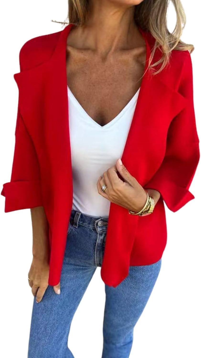 HOTYD Solid Color Faux Suede Cardigan Rolled 3/4 Sleeve Lapel Casual Lightweight Cardigans for Women Trendy Loose Fall Jacket