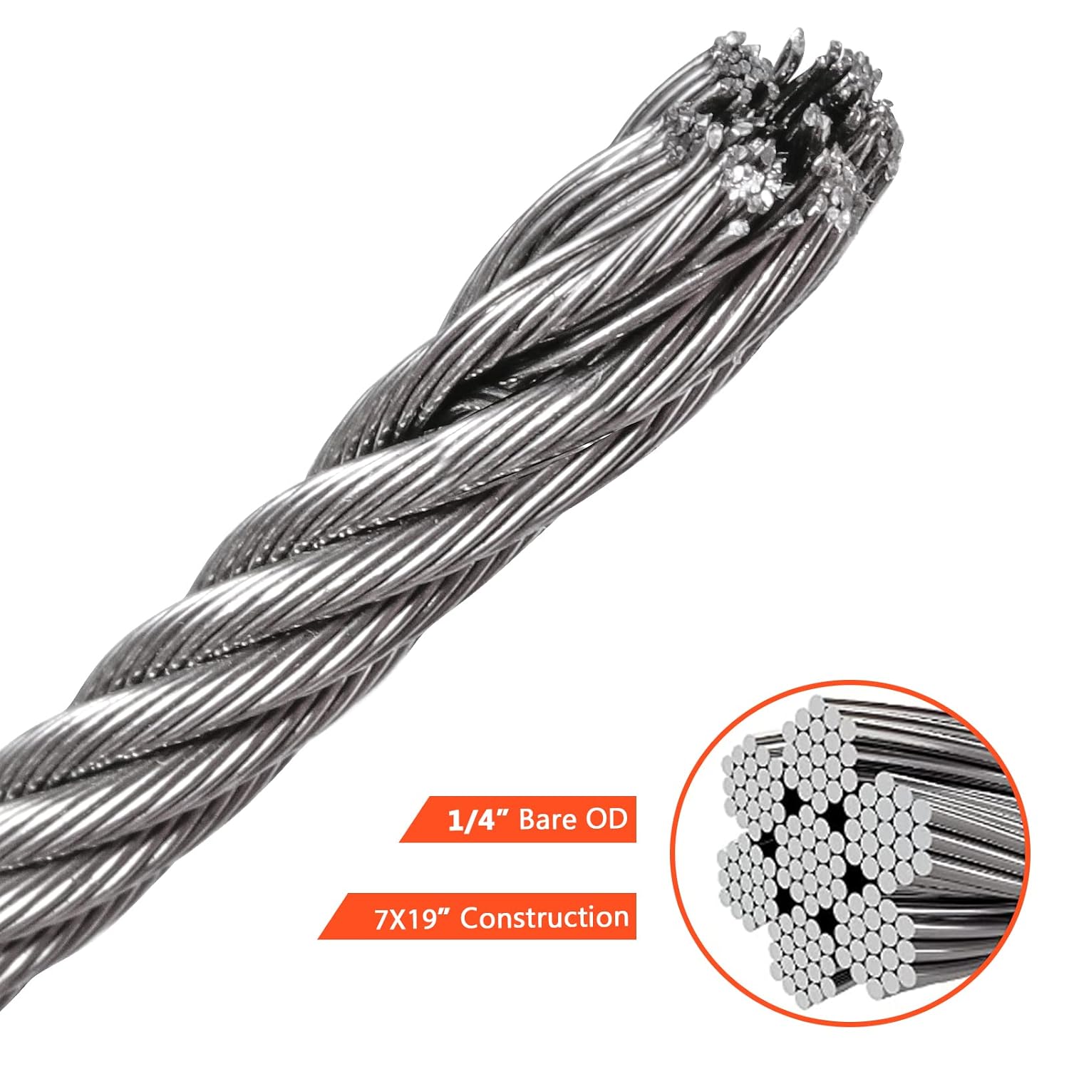 ABOUT SINJEUN SENJEUN believes in “Good products make a better life”. We’re eager to introduce you well-made and user-friendly products at relatively inexpensive prices, dedicating to every customer. Hope our stainless steel wire rope can bring convenience to your life. Shop at SINJEUN, we won't let you down! ABOUT FEATURES: ♦The stainless steel wire rope is easy to install and maintain. Whether it is garden fences, stair railings, clotheslines or carrying, lifting, construction applications, our wire rope can satisfy you. ♦Sturdy and reliable stainless steel cable ensure long-lasting durability and long service life. You can use it with confidence. ♦7 groups of 19 strands are braided together to form the cable with a good load capacity. 6mm wire rope can easily handle corners and bends on railings. ♦With excellent quality, our 1/4 inch wire rope becomes the ideal choice for most professionals. Don't miss it! ABOUT DETAILS: Material: 304 stainless steel Diameter: 1/4 inch Length: 164 feet PACKAGE CONTENTS:1 x Stainless Steel Wire Rope